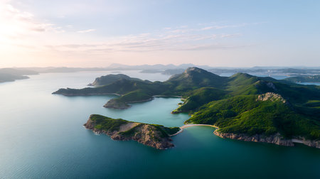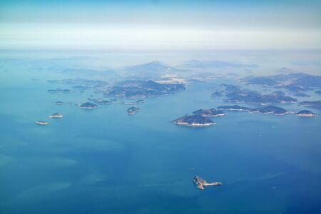 Panoramic view of Gogunsan Islands from Daejangbong peak in Gunsan, Korea