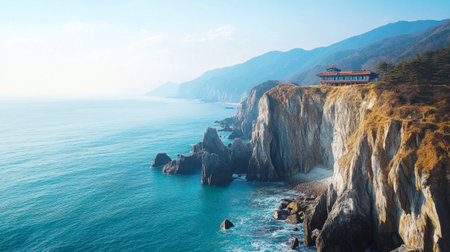 The stunning cliffs and blue waters of Jeongdongjin Beach, known for its beautiful sunrise views and picturesque scenery.