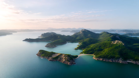 A tranquil moment at the scenic Hallyeohaesang National Park, with its beautiful islands and coastlines.
