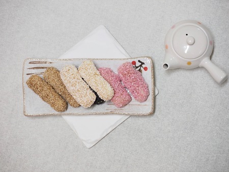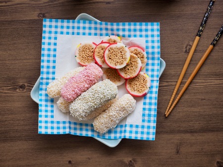 Korean traditional sweets and cookies,, yugwa, glutinous rice cake, gangjeong