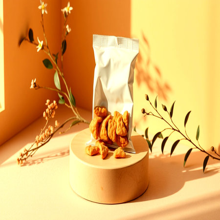 Coffee pack or pack for cookies mockup with copy space.