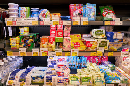 SEOUL, SOUTH KOREA - CIRCA MAY, 2017: inside a grocery store in Seoul. CU is a convenience store franchise chain in South Korea.