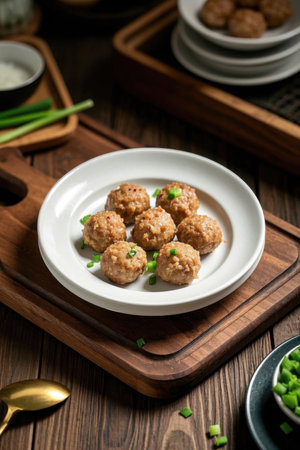A Cantonese morning tea dim sum, handmade beef balls with parsley