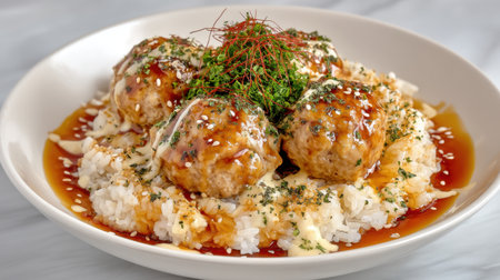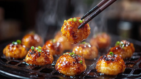 Takoyaki - Japanese hot and spicy soup with meatballs