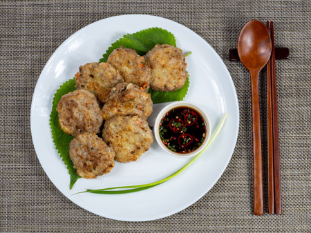 grilled pork balls skewer with sweet chilli sauce. Thai food