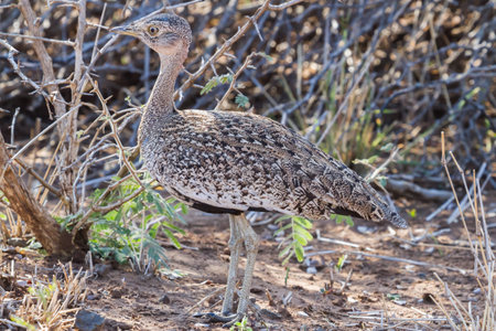 Female Northern Black Korhaan (Eupodotis afraoides) in the Etosha National Park, Namibia