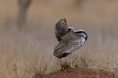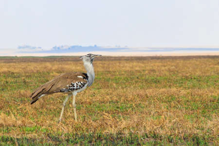 Kori bustard (Ardeotis kori) walking in dry savannah in Serengeti National Park, Tanzania