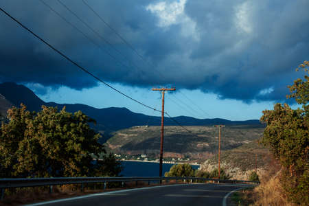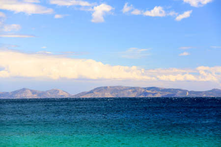 Beautiful greek landscape: seashore with mountains and clouds