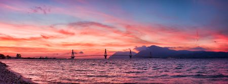 Suspension bridge crossing Corinth Gulf Strait, Greece.