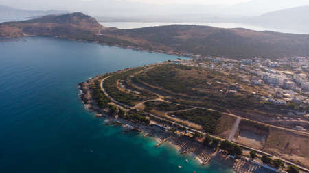 summer Ionian sea coast top view with beaches, Albania