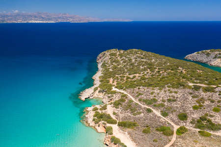 Bay with Seitan Limania beach among rocks with azure water, Crete.