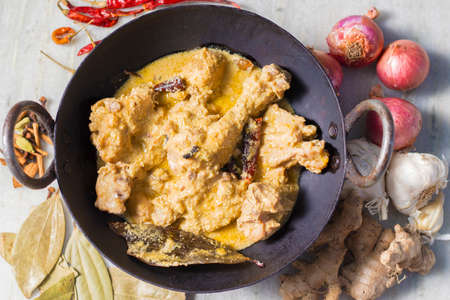 Selective focus of Delicious Chicken Rezala is ready to serve.