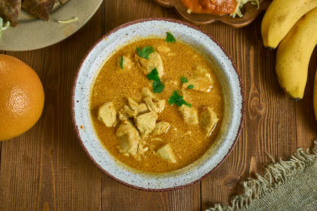 Groundnut Stew, Ghanaian cuisine, Traditional assorted African dishes, Top view.