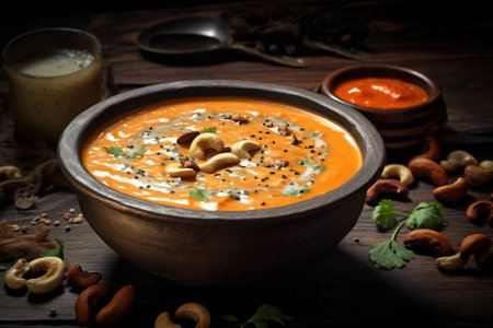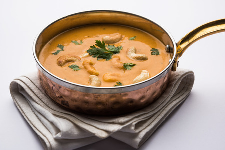Cashew Curry / Indian kaju masala served in a bowl or pan. selective focus