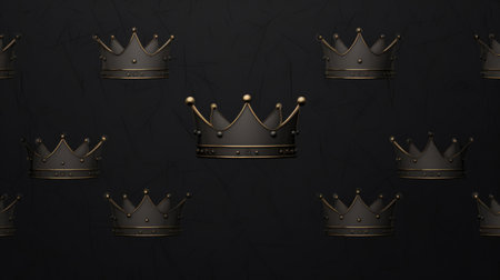 Black crowns on a black background. 3d rendering, 3d illustration.