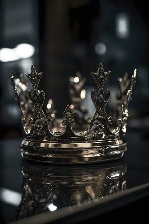 Close-up of a gleaming silver crown, symbolizing power and royalty.