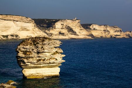 View of the picturesque landscape of cliffs over the Mediterranean sea in Bonifacio, Corse, in France