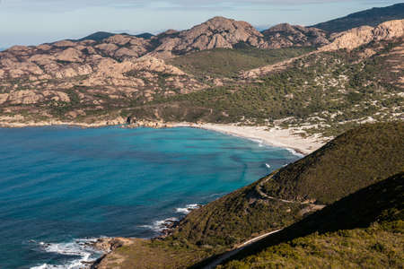 Lotus beach, Cape Corse, Corsica, France. Turquoise water and wild coastline