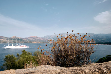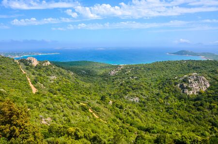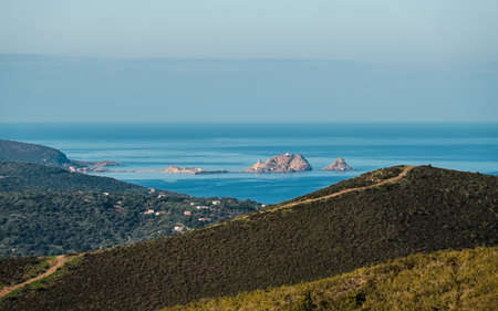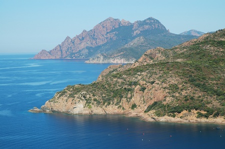 Beautiful view in Corsica stock images. Corsican landscape with mountains and sea stock photo. Beautiful landscapes of Corsica island stock images
