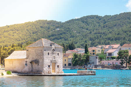 Small picturesque house of Saint Jerolim, stone greek style building standing on the waterfront of Starigrad,Hvar.