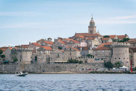 Korcula, Croatia- September 3 2021: the picturesque town in summer