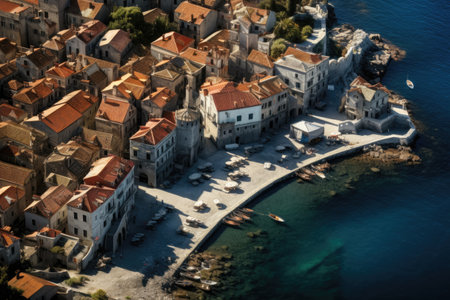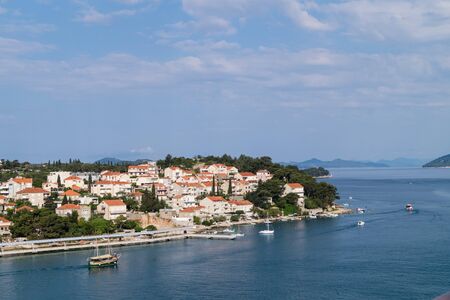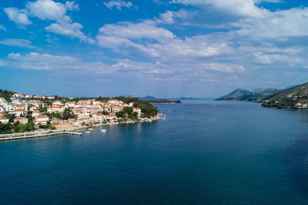 Stock photo of aerial view of the coastline of the village of Dubrovnik, Croatia, Travel concept