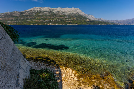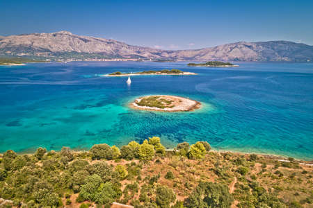 Korcula. Lumbarda on island of Korcula turquoise sailing archipelago, landscape of southern Dalmatia, Croatia