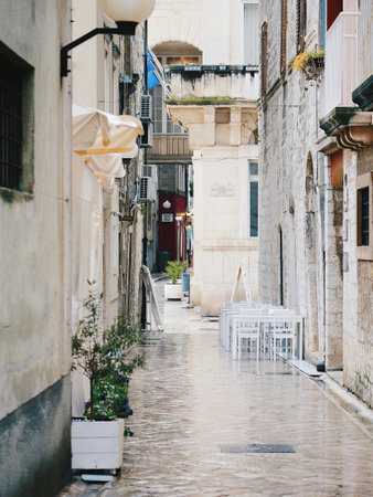 Budva, Montenegro - September 17, 2021: Medieval street in the Old Town of Budva, Montenegro