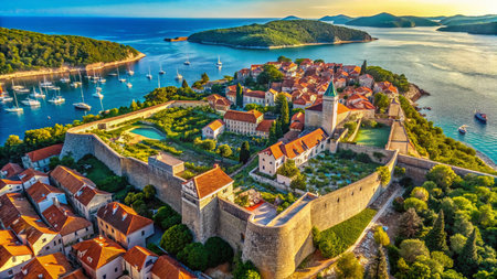 Aerial View of Hvar Fortress, Croatia: Historic Walls & Adriatic Sea Panorama