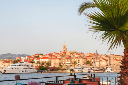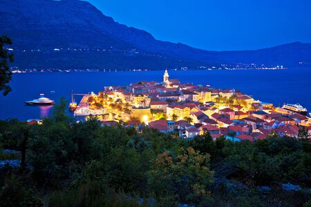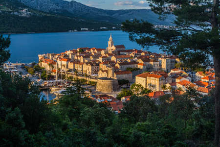 Town of Korcula panoramic evening view, historic tourist destination in archipelago of southern Dalmatia, Croatia