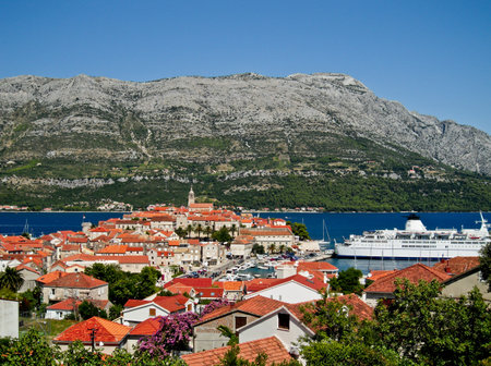 Panoramic view of Korcula, old medieval town in Dalmatia region, Croatia