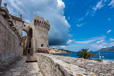 Korcula, Croatia- september 3 2021: the picturesque town walls