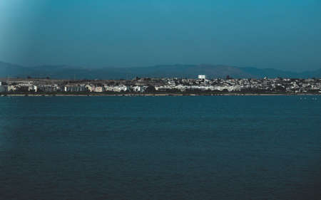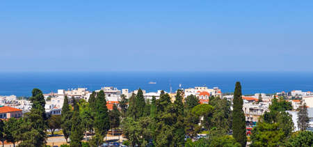 Paphos, Cyprus-July 24, 2019: High point view of the resort town of Paphos and the Mediterranean sea on a Sunny day