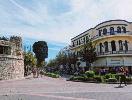 Kos, Greece - September 17, 2019: Streets in the center of Kos city, Greece