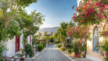 Kos Island, Greece circa May 2020: View of an ancient street in town