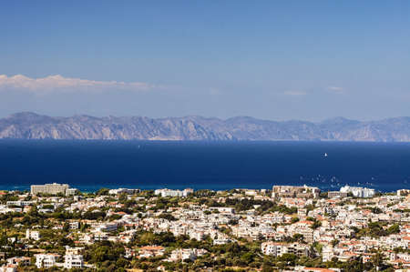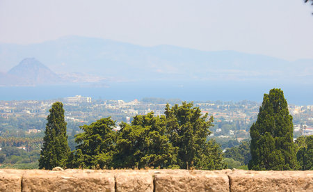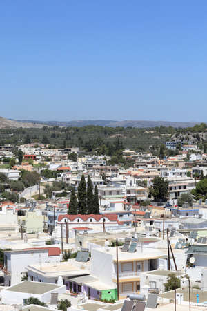 A exciting panoramic cityscape view of Archangelos at Rhodes, Greece. Sunny hot weather in mid-July.