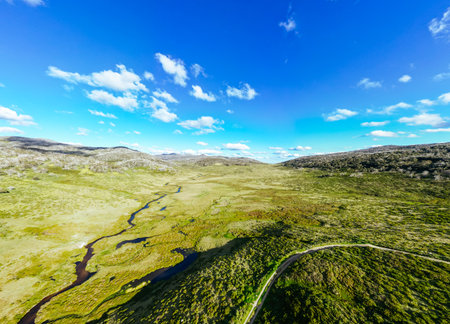 Mountain waterfall. Scenic region between Aurland and Laerdal in Norway. National tourist route Aurlandsfjellet.