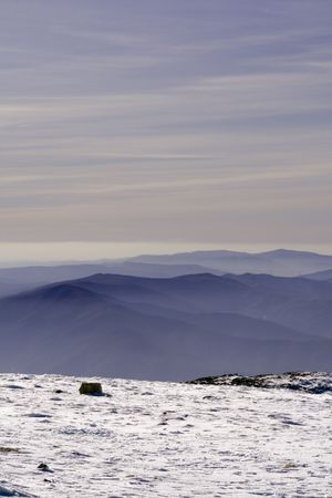 Photograph of cloud covered mountains in Charlotte Pass in the Snowy Mountains in New South Wales in Australia