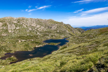 Exploring the serene beauty of the Main Range Walk in Mt Kosciuszko on a clear day with lush landscapes and tranquil lakes, Australia
