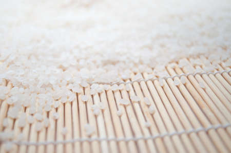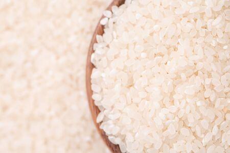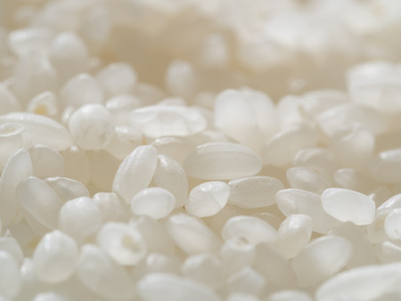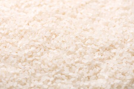 White long rice background, uncooked raw cereals, macro, close up, low depth of field