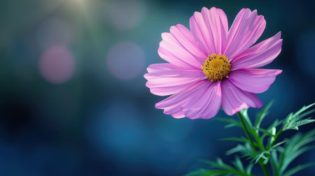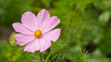Delicate pink cosme daisy flower on a beautiful background. Copy space.