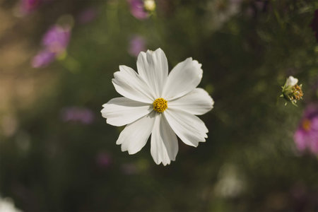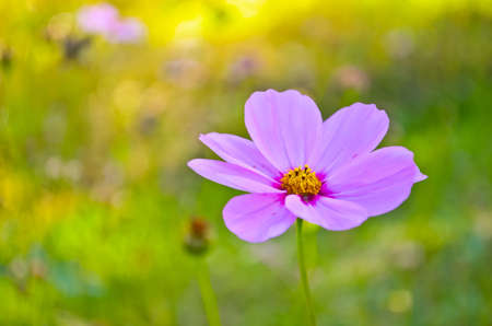 Beautiful cosmos flower in the garden with sunlight and bokeh