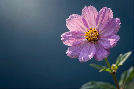 Pink cosmos flower on a dark blue background. Close-up.