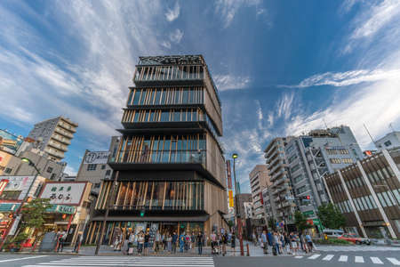 Tokyo, Taito Ward - August 18, 2018 : Tourists walking around Asakusa Culture Tourist Center designed by architect Kengo Kuma in Asakusa district, Tokyo, Japan.