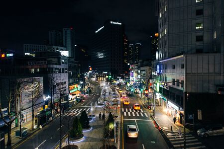 south korea, seoul - march, 2019 Panoramic night view of Seoul viewed from the mountain.