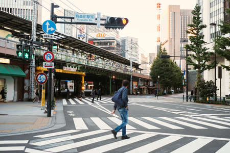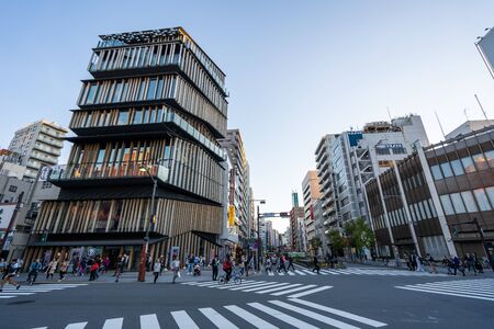 TOKYO, JAPAN - NOVEMBER 06, 2019: Unidentified people crossing the road in the morning in Ginza, Tokyo, Japan.