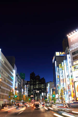TOKYO, JAPAN - Apr 06, 2016: The streets and night lights of Tokyo. Tokyo - Japans capital, administrative, financial, cultural, commercial and political center. The largest city economy in the world