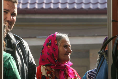 Sintesti, Ilfov county, Romania, November 22, 2009: A gypsy woman waits outside of a polling station in Sintesti, to vote for the presidential elections.
