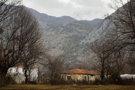 Green fields and village houses in the vicinity of Niksic. Montenegro