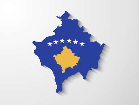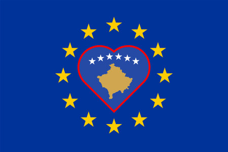 Flag of Kosovo in the form of a heart on the flag of the European Union. Allied support for Kosovo. Flat double flag - illustration.